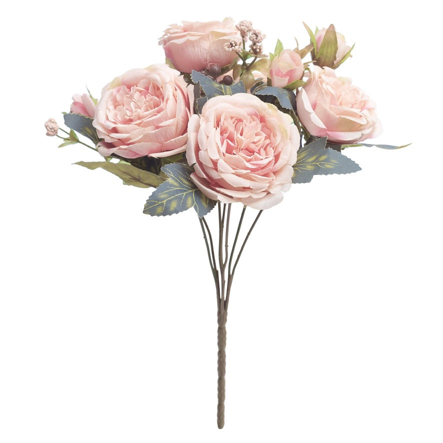 Artificial Silk Peony & Tea Rose Bouquet (Pretty Nude Pink)