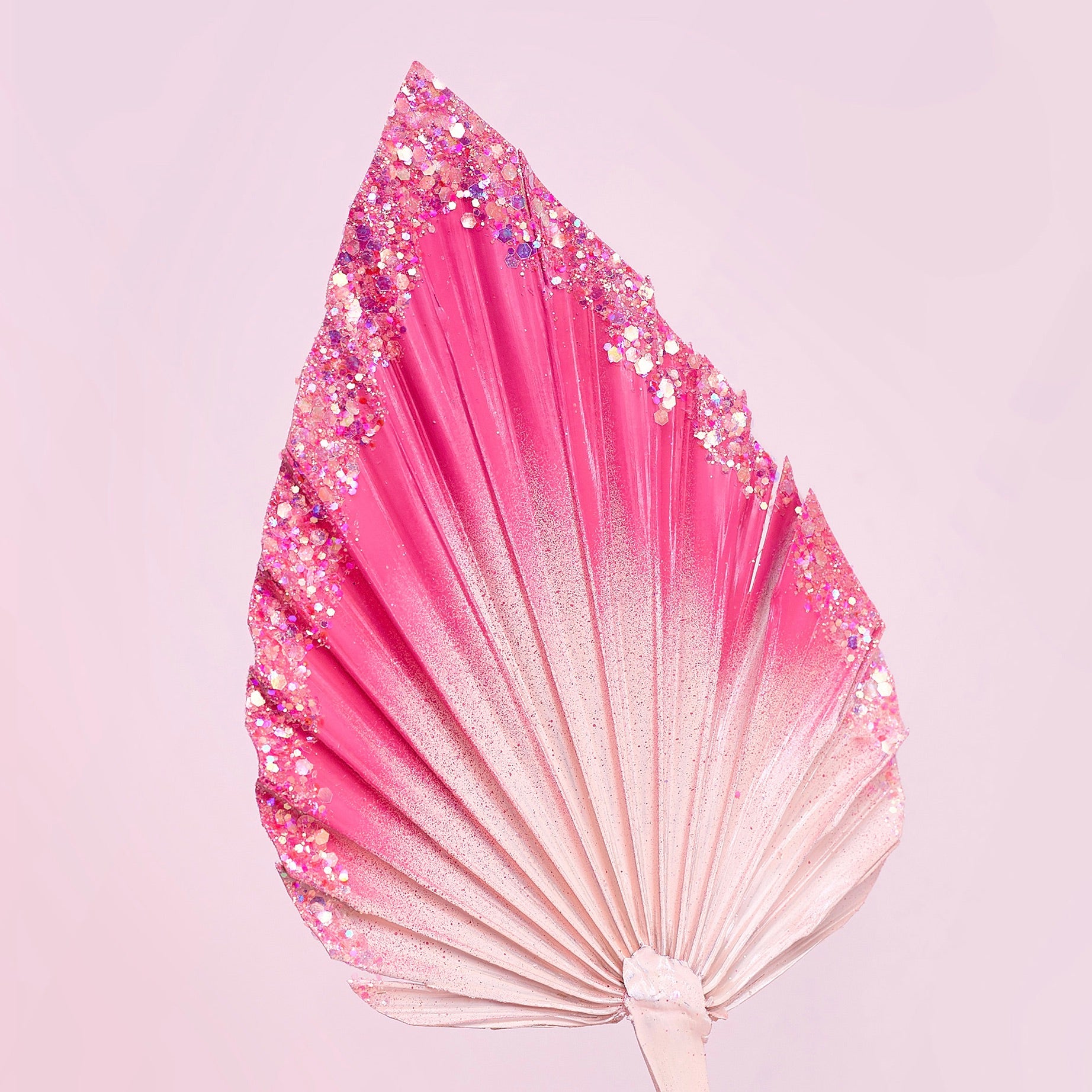 Decorated Dried Palm Spear (Pink Glitter Ombre)