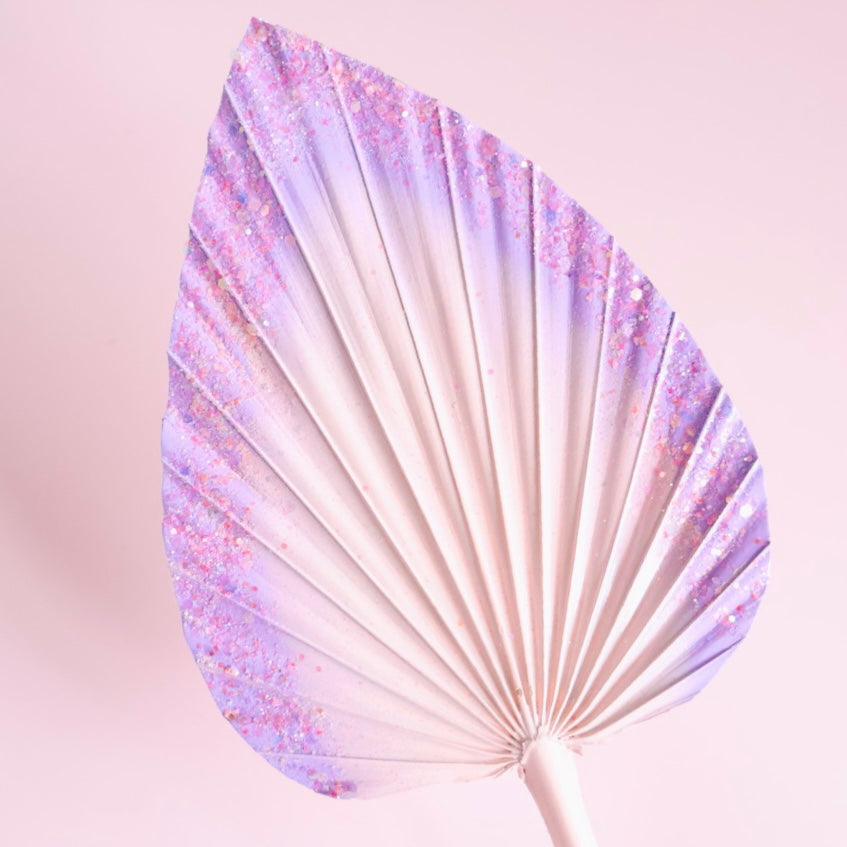 Decorated Dried Palm Spear (Pink & Purple Ombre With Glitter)